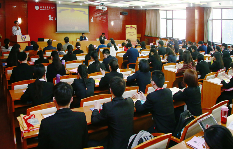 2015年4月24日,北京中医药大学首期“岐黄星火”学生骨干培训学校开学仪式于博物馆二层报告厅成功举办。副校长翟双庆、校长助理、研究生院常务副院长刘铜华、本期培训学校的思想导师代表以及100名学员出席了开幕式,开幕式由团委书记傅骞主持。