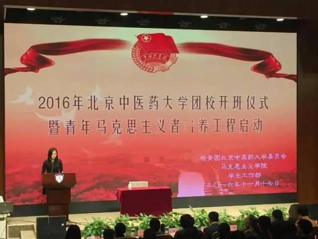 2016年11月17日下午,“北京中医药大学团校开班仪式暨青年马克思主义者培养工程启动仪式”(以下简称‘青马’培训)在良乡校区教学楼报告厅顺利举行。